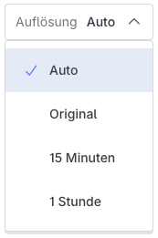 Die Original Abtastrate liefert den vollständigen, nicht aggregierten Datensatz. Dabei wird jede einzelne Beobachtung ohne Mittelwertbildung angezeigt, sodass Spitzen und Anomalien vollständig sichtbar sind. Warnung: Dies kann eine große Datenmenge umfassen, was zu langen Ladezeiten führen und das Diagramm verlangsamen kann. Vermeiden Sie diese Option bei großen Zeiträumen oder bei vielen ausgewählten Datenpunkten.