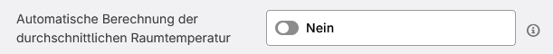 - In dem seltenen Fall, dass eine repräsentative Anzahl von Temperatur-Datenpunkten aus den Räumen vorliegt, kann über den Toggle eine automatische Berechnung einer durchschnittlichen Raumtemperatur angestoßen werden.