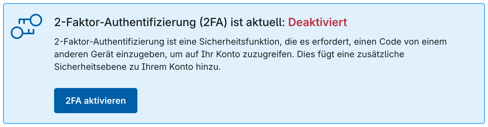 Abbildung 3: Banner zur 2-Faktor-Authentifizierung, das den aktuellen Status der 2FA anzeigt